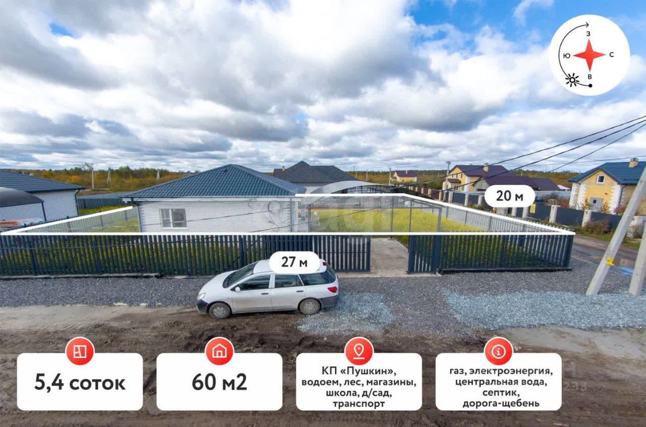 ЦЕНТРАЛЬНЫЙ ВОДОПРОВОД И ГАЗ! ДОМ от ИП подходит по семейной ипотеке! КП Пушкин, активно застраивающийся поселок со всеми коммуникациями. Площадь дома 60 м2, включает 2 спальни, кухню-гостиную, котельную, санузел. Земельный участок 6 сот. правильной прямоугольной формы.