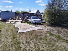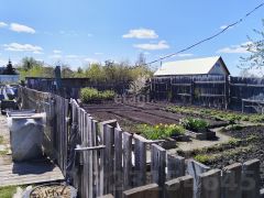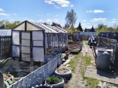 - На территории расположены жилой дом, который можно использовать как подсобное помещение на период строительства, баня, теплица и сарай.
