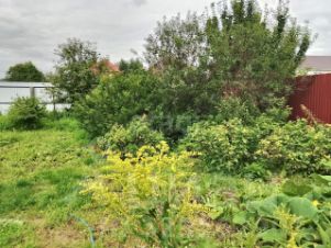 На приусадебном участке растут плодовые деревья: яблони, вишни, сливы, а также кустарники смородины и малины.