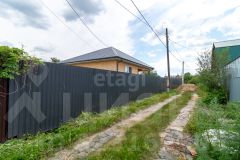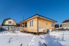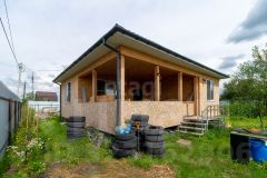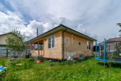 На участке имеется одноэтажный дом 57 кв м в каркасном исполнении, утепленный минеральной ватой, столбчатый (4м столбы) металлический фундамент (10м*10м), кровля металлочерепица, оснащена ночной подцветкой.