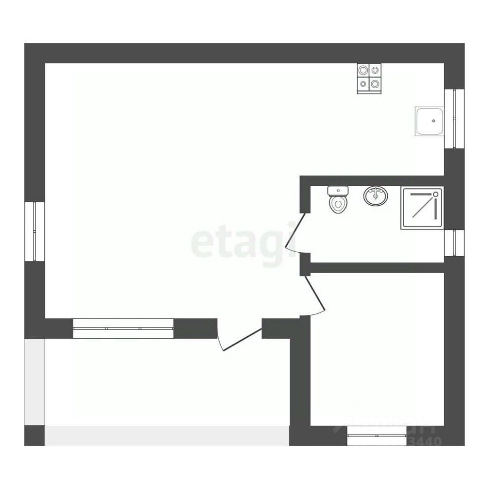 В доме вместительная кухня гостиная площадью 41 кв м, спальня 12 кв м, со своим сан. узлом 2 кв м.