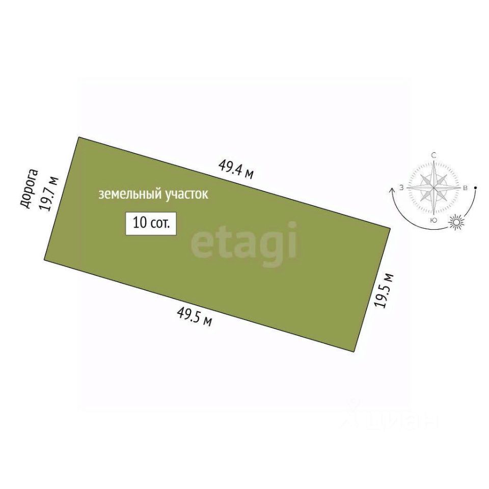 10 соток, правильной формы. Участок находится в 3 очереди коттеджного поселка с уже активной застройкой.