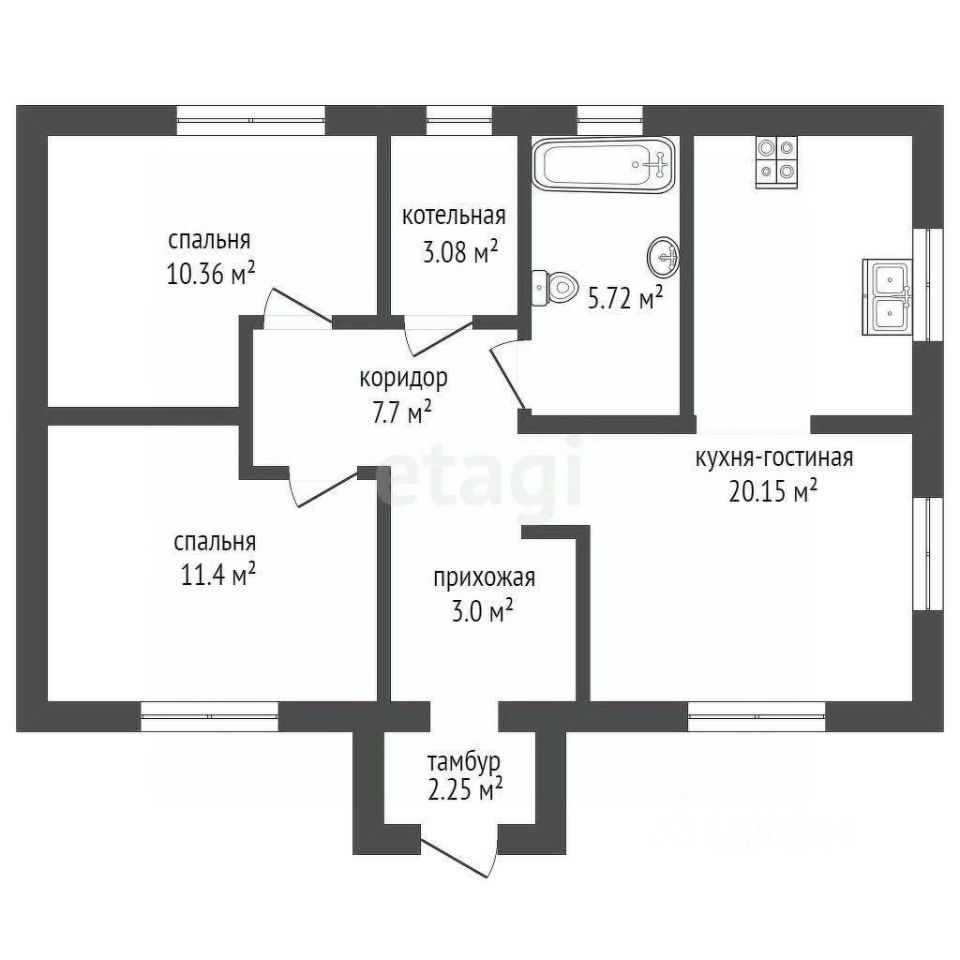* ПЛАНИРОВКА: ничего лишнего и достаточно места для всех и всего. 2+. Вам будет легко организовать ужин в саду — из кухни есть выход на террасу. Оцените удобство теплого тамбура — не нужно нести грязную обувь в чистый дом и есть розетка для сушки обуви. Точную планировку и размеры комнат смотрите на одном из фото.