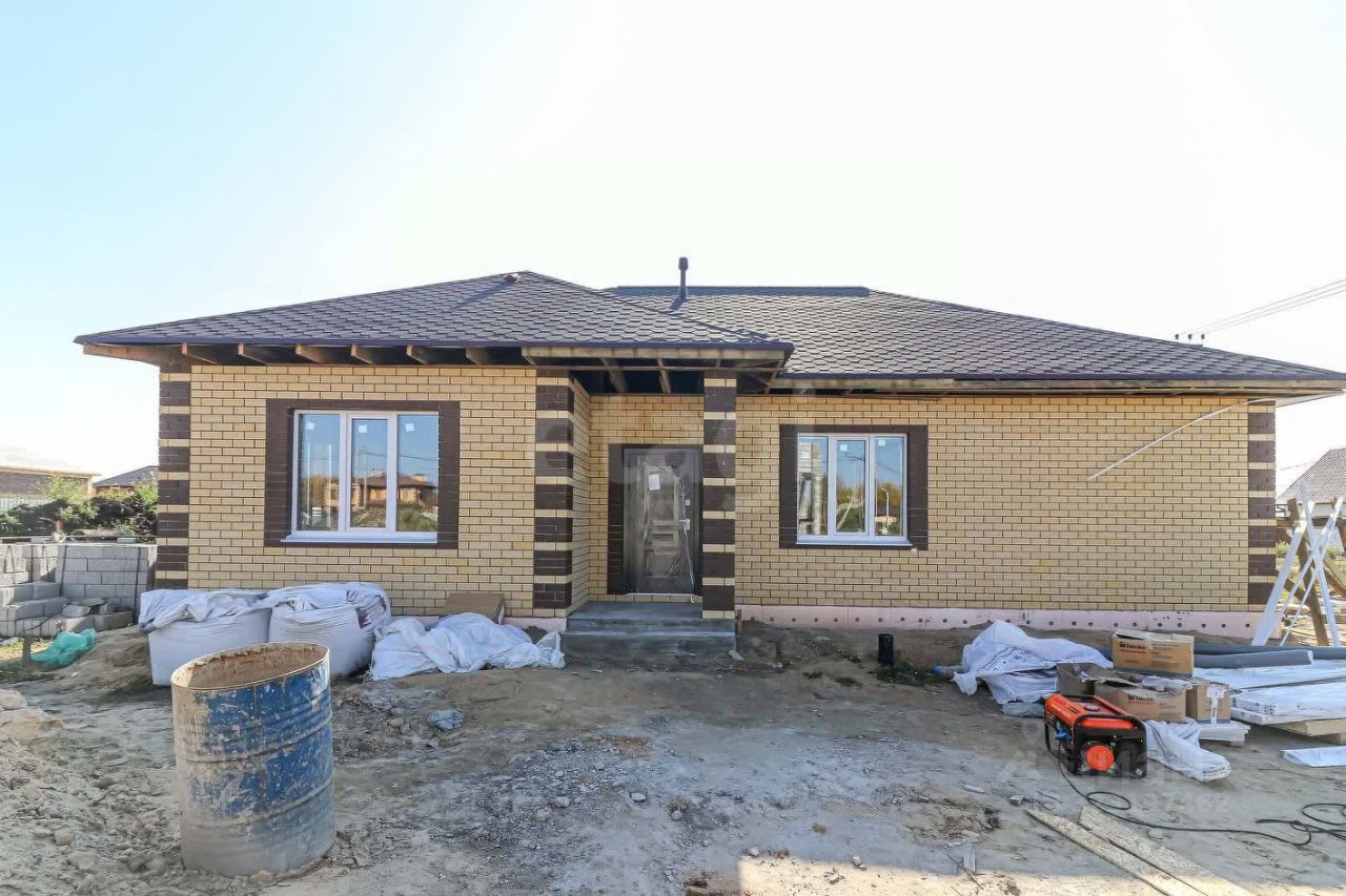 Продается строящийся дом формата 3+. Площадь дома будет 115 квадратных метров, три изолированные комнаты и просторная кухня гостиная с выходом на террасу. Участок правильной формы. Дом будет построен из керамзитобетонного блока толщиной 300 мм, утеплен каменной ватой 100 мм и облицован керамическим кирпичом. Фундамент монолитная плита. Скважина, септик переливной 7 кубов. Окна пластиковые 70 профиль тройной стеклопакет. В доме будет выполнена улучшено- черновая отделка, стены выровнены и оштукатурены под маяк, разведена электрика, радиаторы отопления установлены в каждой комнате, плюс теплый пол по всему периметру дома. Кровля металлочерепица. Возможна покупка по Семейной ипотеке.Просмотр в любое удобное для вас время,звоните.