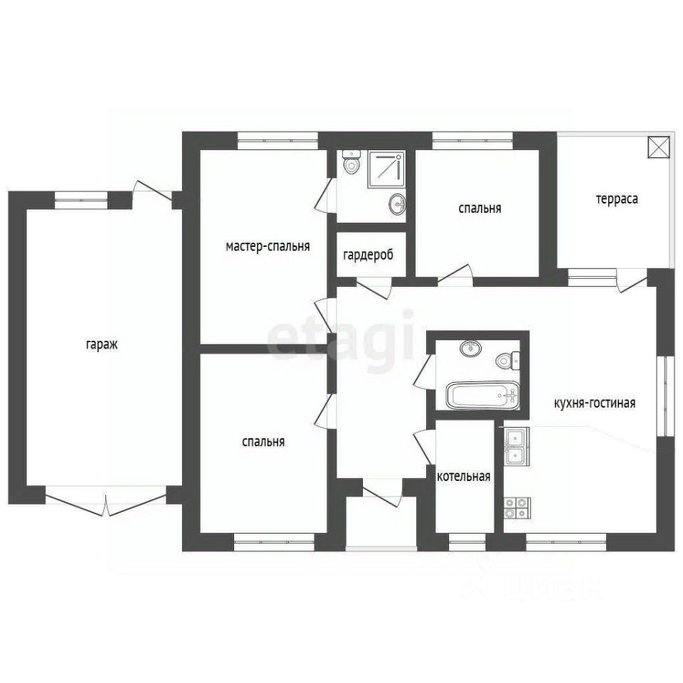 - Удобства: три комфортные спальни, включая отдельную комнату с собственным санузлом, оборудованная большая кухня-гостиная, отдельный гардероб, просторная терраса и удобный теплый гараж.