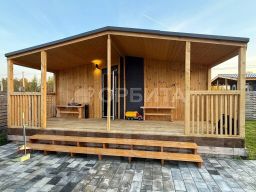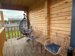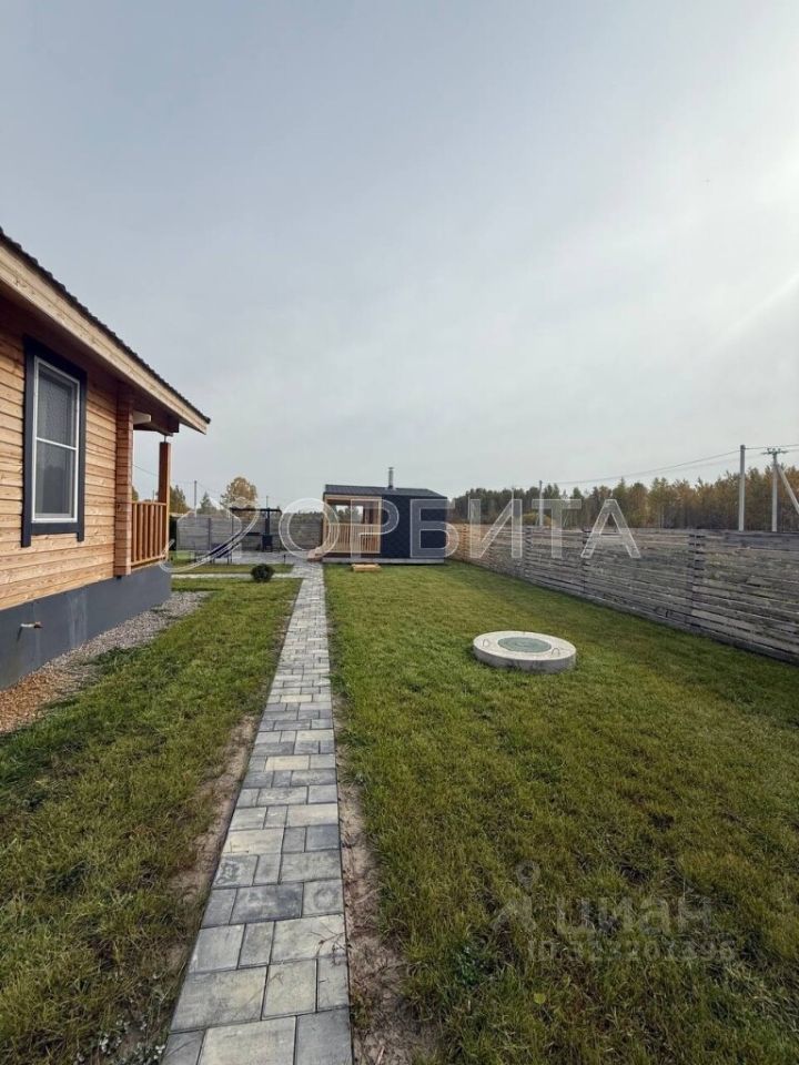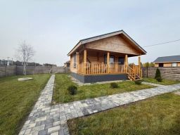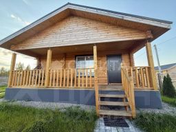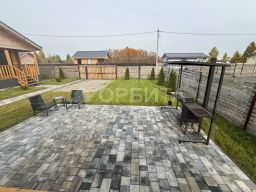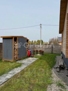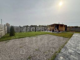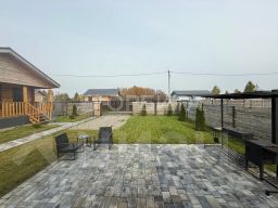Участок: 5 соток , завезен плодородный слой земли, посажен газон, декоративные кустарники. Участок выровнен, уложена брусчатка на дорожках и мангальной зоне отдыха перед баней, сделаны уклоны газона, для того чтобы дождевая вода не застаивалась на газоне и дорожках. Из дома смонтирован летний водопровод, для организации беспрепятственного полива участка и прочих нужд. Также имеется уличная розетка на доме, для подключения внешних приборов на террасе. За домом имеется хозблок с дровником.