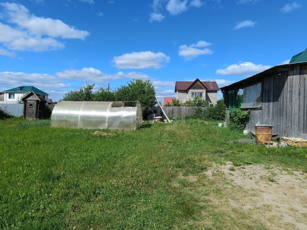 Участок благоустроен: имеется плодоносящий сад с яблонями, вишнями, сливами, грушами и тремя видами смородины, а также теплица 3x6 метров и баня.