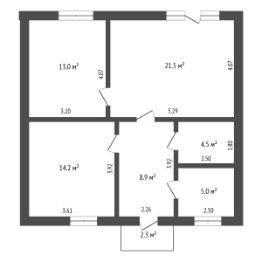 Дом имеет функциональную планировку: 2 просторные спальные комнаты , кухня-гостиная, бойлерная, сан/узел. Высота потолков 3,2м в чистовой 2,85м.