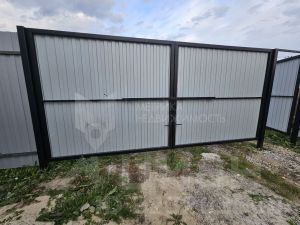 Земельный участок правильной формы, по периметру построен заборс распашными воротами и калиткой.
