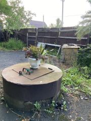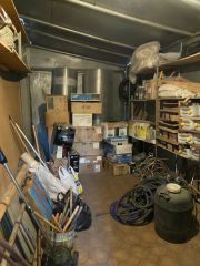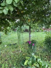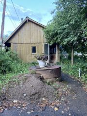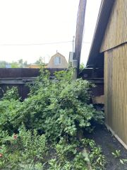 На участке расположен двухэтажный дом, с погребом, баня, гараж, колодец, скважина, теплица, много плодоносных деревьев, цветущих многолетник кустарников. Также есть 2 сотки земли рядом с участком под картошку, где также есть кустарники.