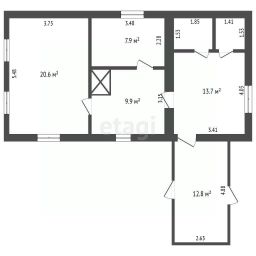 Дом 76,4 кв. м, каркасно-засыпной, кухня, две комнаты. Отопление печное и электрическое. Имеется центральный водопровод, электричество, септик. На участке баня, сарай.