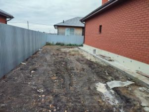 Участок площадью 4 сотки огорожен забором из металлического профиля, его форма позволяет возвести гараж. Придомовая территория просторная, подъезд к участку засыпан щебнем. Транспортная доступность на высоком уровне — остановка общественного транспорта находится в 200 метрах, что обеспечивает удобное сообщение с городом.