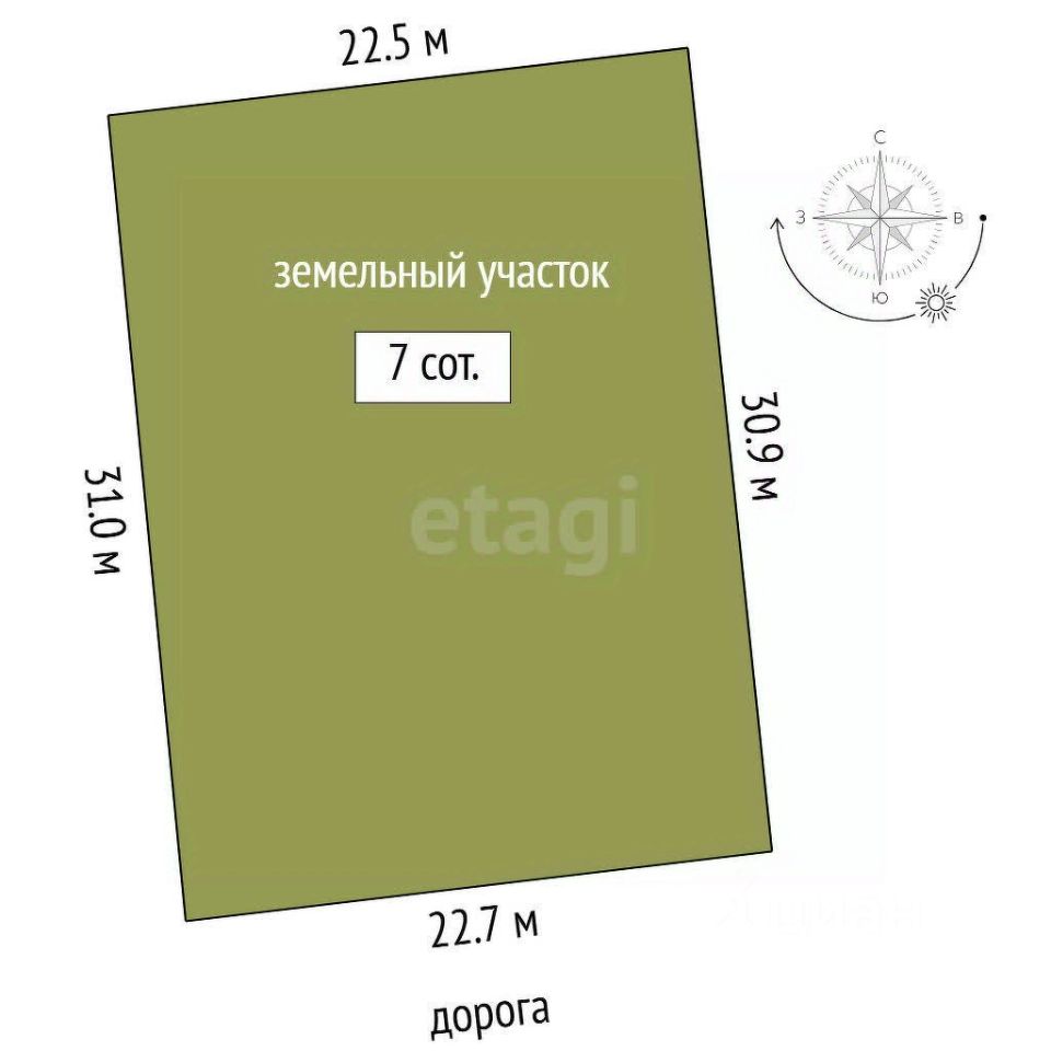 Участок 7 соток, правильной формы.