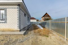 Фундамент дома выполнен из ленточного бетона с залитой монолитной плитой, что обеспечивает долговечность и устойчивость. Наружные стены построены из керамзитоблока, обложенного полуторным керамическим кирпичом, что гарантирует отличную тепло- и звукоизоляцию. Четырехскатная утепленная крыша с деревянными перекрытиями и покрытием из ондулина защищает дом от любых погодных условий.