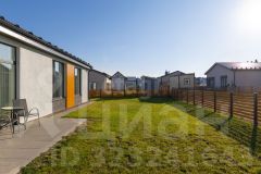Земельный участок правильной формы, огорожен забором, засеян газоном. Имеется придомовая парковка на 2 автомобиля.