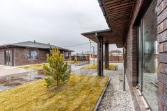 • Ландшафт: Брусчатые дорожки, ухоженный газон и декоративные растения создают приятную атмосферу.