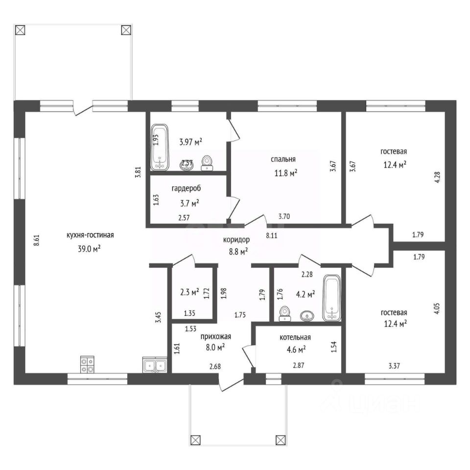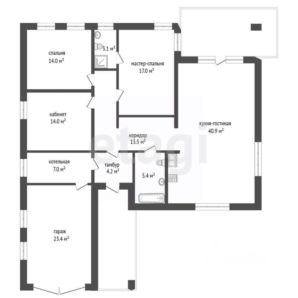 Готовый дом с продуманной планировкой 122 м², 3 комнаты, кухня-гостиная и мастер-спальня с гардеробной.