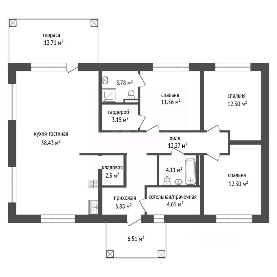 • Улучшенная черновая отделка, все коммуникации