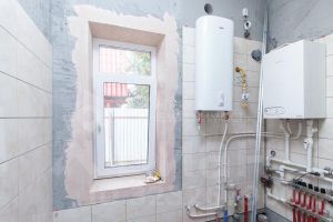 Внутри выполнен евроремонт, а из мебели остается кухонный гарнитур с встроенной техникой: микроволновая печь, духовой шкаф и варочная панель.