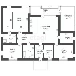- Просторная кухня-гостиная площадью 38 м² с выходом на закрытую террасу — идеальное место для семейных встреч и праздников.