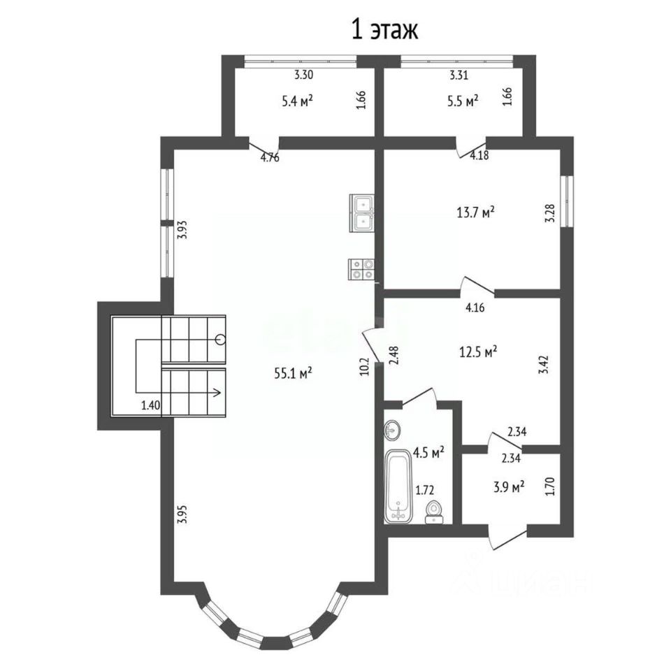 1 этаж : кухня-гостиная 55м2 , кабинет, с/узел