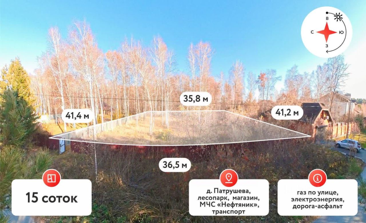 Расположение: Деревня Патрушева тихий и экологически чистый район, идеальное сочетание загородной тишины и городского комфорта!