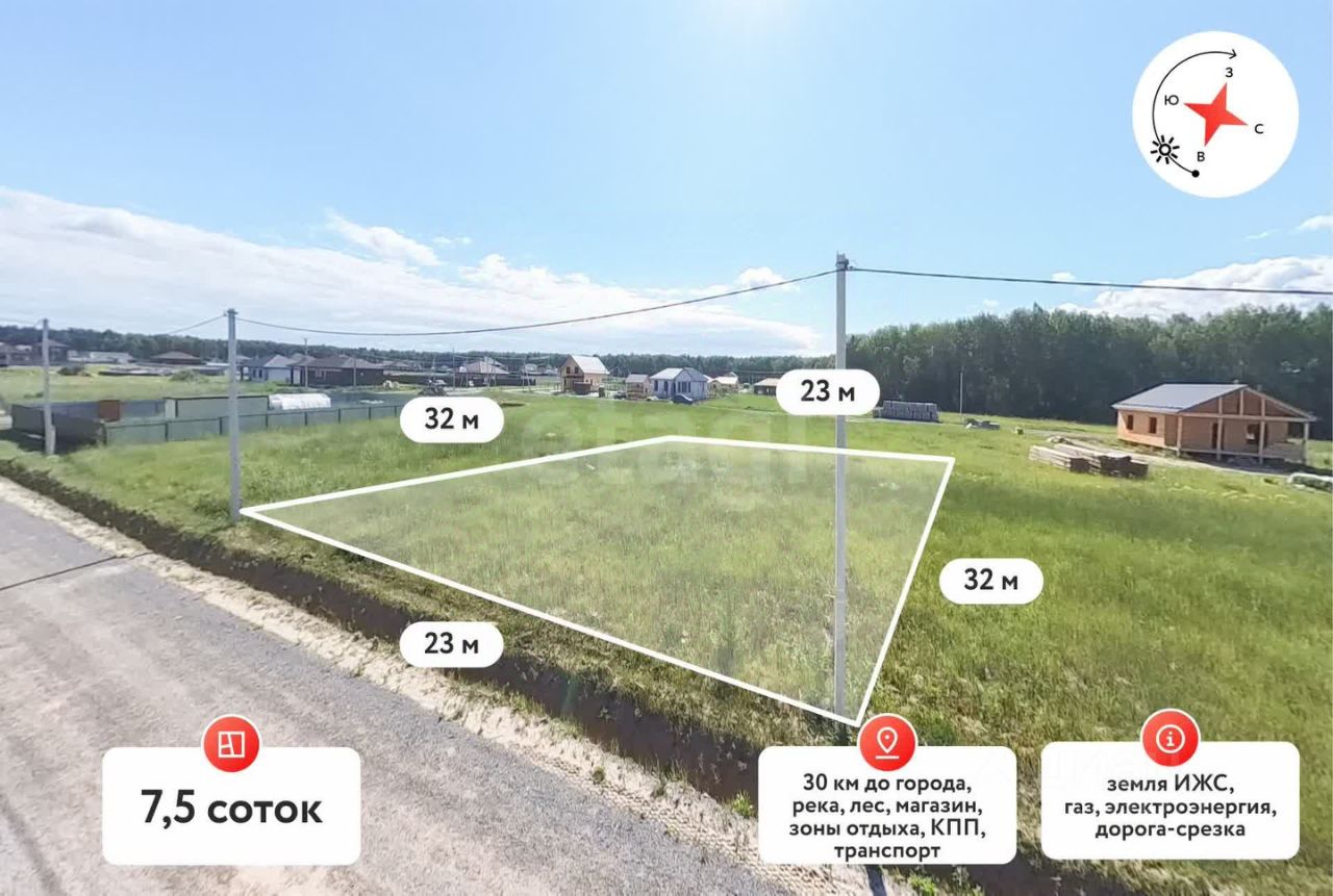 Земельный участок площадью 7,5 соток на возвышенности предоставляет отличные возможности для строительства дома и придомовых построек.