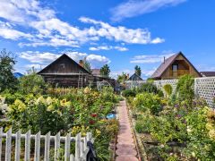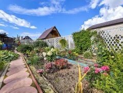 Во дворе вас ждет брусчатка, огромная беседка, мангал и полностью ухоженный сад, где не требуется много труда.