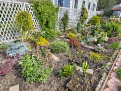 Среди насаждений вы найдете голубую ель, другие хвойники, розы, гортензии, барбарисы, яблони, сливу, дюки, ягоды, сортовые сирени, можжевельник и многое другое.