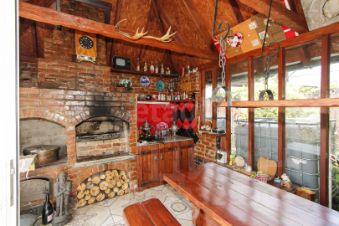 Живописный двор с мангальной зоной, на всей территории ухоженный газон с насаждениями, оборудованный автополивом, крытая зона барбекю, летняя кухня, теплая мастерская, теплица.
