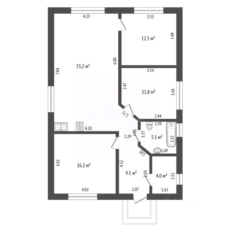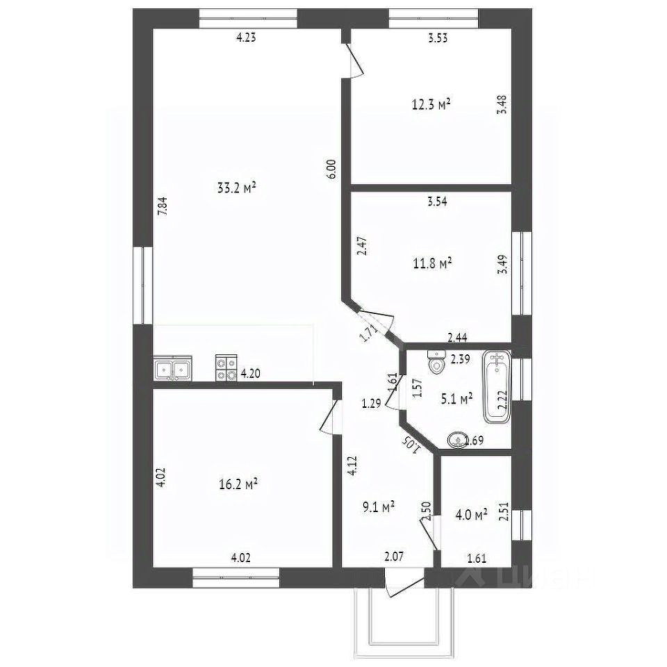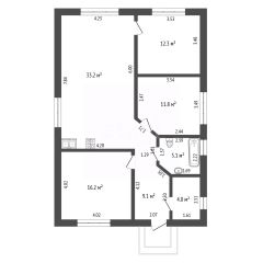 3 cпальни: 11,8 + 12,3 + 16,2 кв.м.