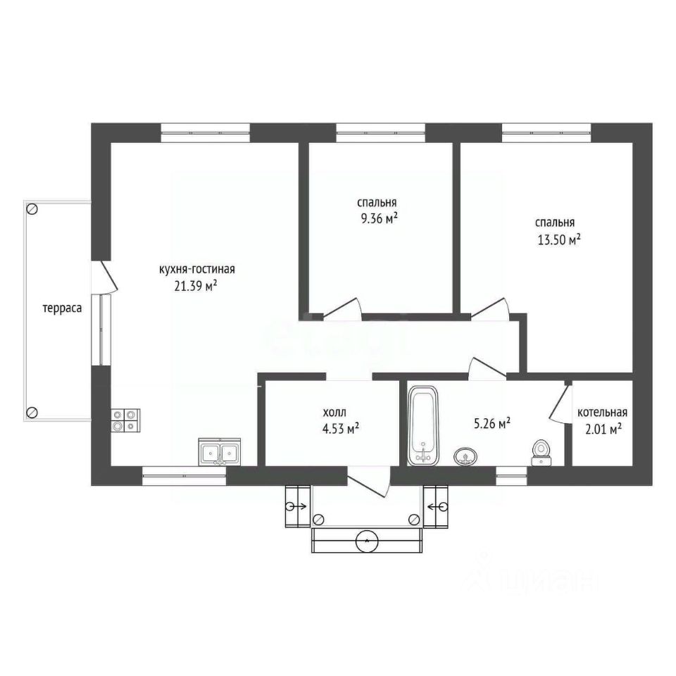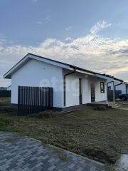 Дом выполнен в едином архитектурном стиле и предлагается с качественной чистовой отделкой, что позволяет заселиться сразу после покупки. Планировка включает две изолированные спальни, совмещенную кухню-гостиную с выходом на просторную террасу, санузел и котельную. Большие окна в общей зоне наполняют пространство естественным светом и создают ощущение простора. Фасад утеплен и отделан штукатуркой, кровля из гибкой черепицы дополнена ливневой системой и снегозадержателями. Придомовая территория благоустроена, по фасаду установлен забор, предусмотрено парковочное место.