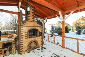Зона-барбекю под навесом с большой русской печью, мангалом, коптильней, зоной для приготовления пищи.