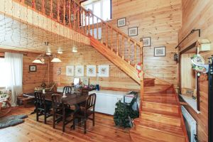 В основном доме два этажа, дорогостоящий ремонт по дизайн-проекту, отделка натуральным деревом. Полностью меблированный.