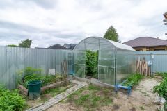 На участке высажены разнообразные растения: смородина, можжевельник, гортензия и сладкая сортовая клубника, которая порадует вас в сезон. Также имеется теплица размером 3 на 4 метра, где вы сможете выращивать свои любимые овощи и зелень.