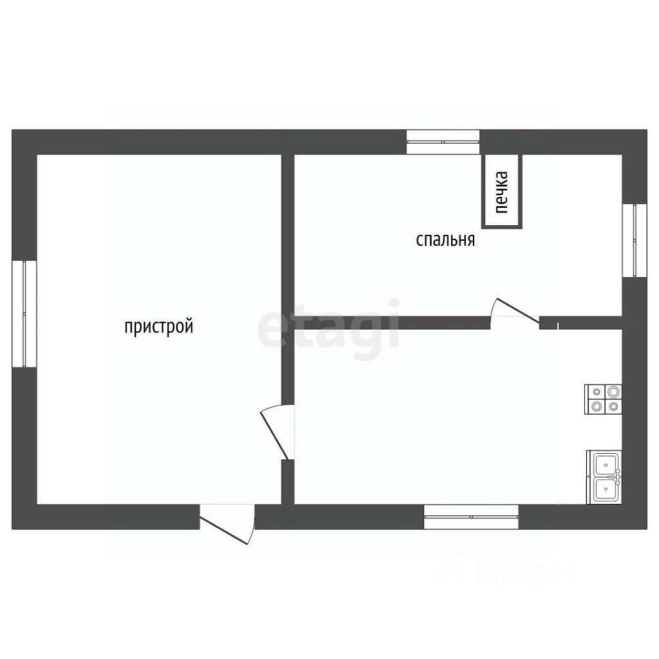 Домик: компактный, но вместительный — площадь около 35 м². Внутри царит особая атмосфера благодаря печному отоплению, которое дарит неповторимый домашний уют. У входа просторная и светлая веранда приглашает отдохнуть от забот городской жизни и насладиться природой вокруг.