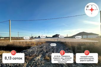 Участок площадью 8,1 сотки правильной формы расположен в деревне Падерина, что обеспечивает оптимальный баланс между близостью к Тюмени и преимуществами загородной жизни.