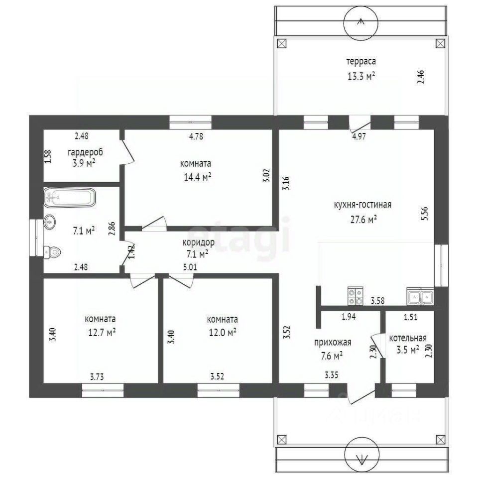 Планировка дома предусматривает удобную планировку формата 3+, а высокие потолки в кухне-гостиной создают эффект второго света. За дополнительной информацией обращайтесь по телефону.