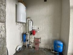 К дому ведёт асфальтированная дорога, а на границе участка проведён газ. Электричество подключено на 380 вольт, а канализация представляет собой переливной септик.