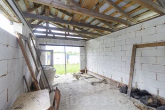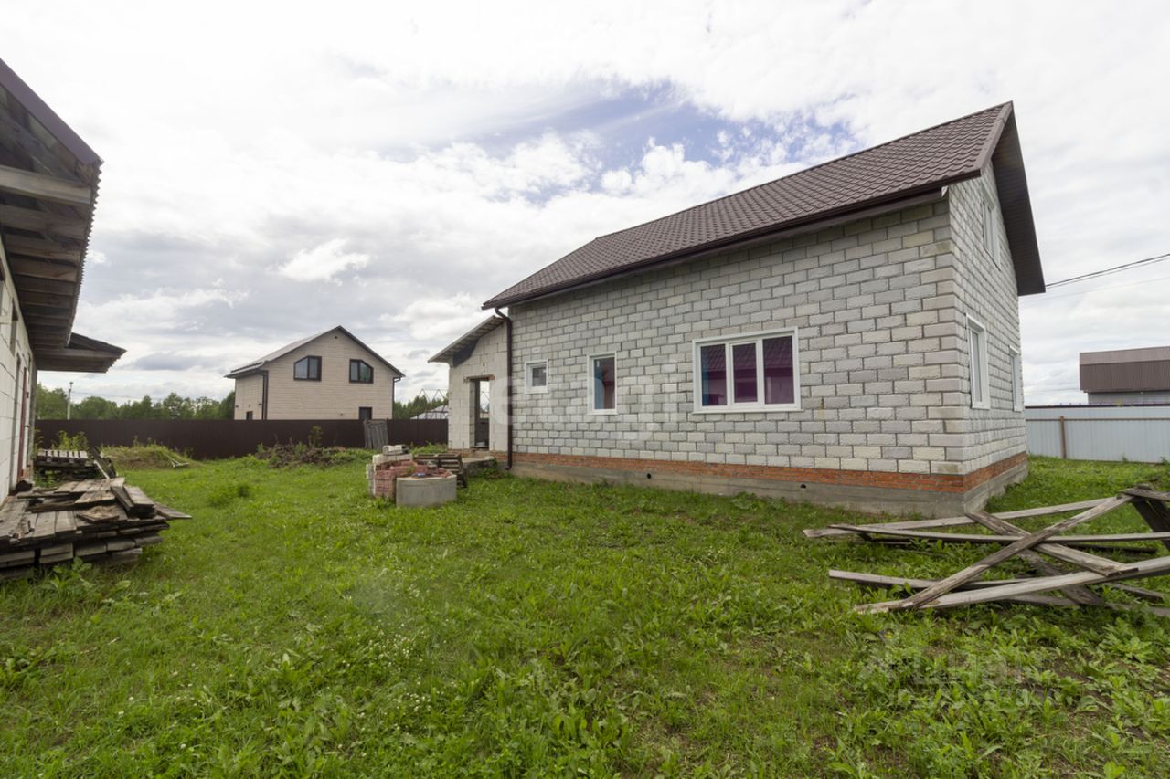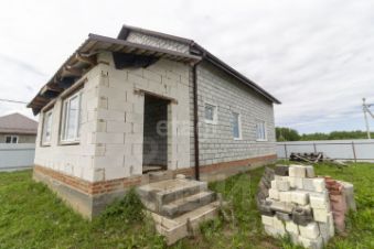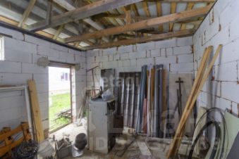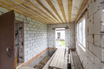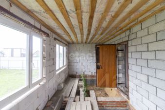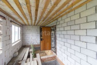 Дом из теплоблока, фундамент-ленточный на сваях. Свет заведен в дом, сделана разводка, электрический котел. Все подготовлено для установки газового котла. Отопление по дому разведено. Окна пластиковые, тройной стеклопакет. Пол и потолок деревянные, утепленные минватой. На стенах гипсовая штукатурка. Остаются стройматериалы для дальнейшего ремонта. Гараж на два автомобиля, хозяйственное помещение, баня из арбалитового блока под одной крышей на бетонной подушке. Септик 10 кубов, колодец 8 колец, каркас теплицы.