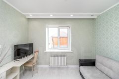 - Пол в гостиной, коридоре и бойлерной широкоформатный керамогранит, остальные помещения качественный ламинат.