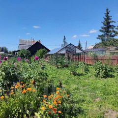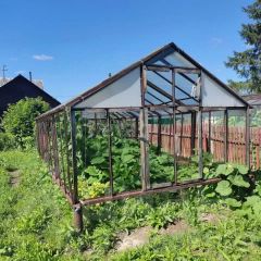 На участке есть некоторые садовые культуры - ягодные кусты и молодые деревья. С задней стороны участок ограждения соседским забором, с других - установлено временное ограждение.