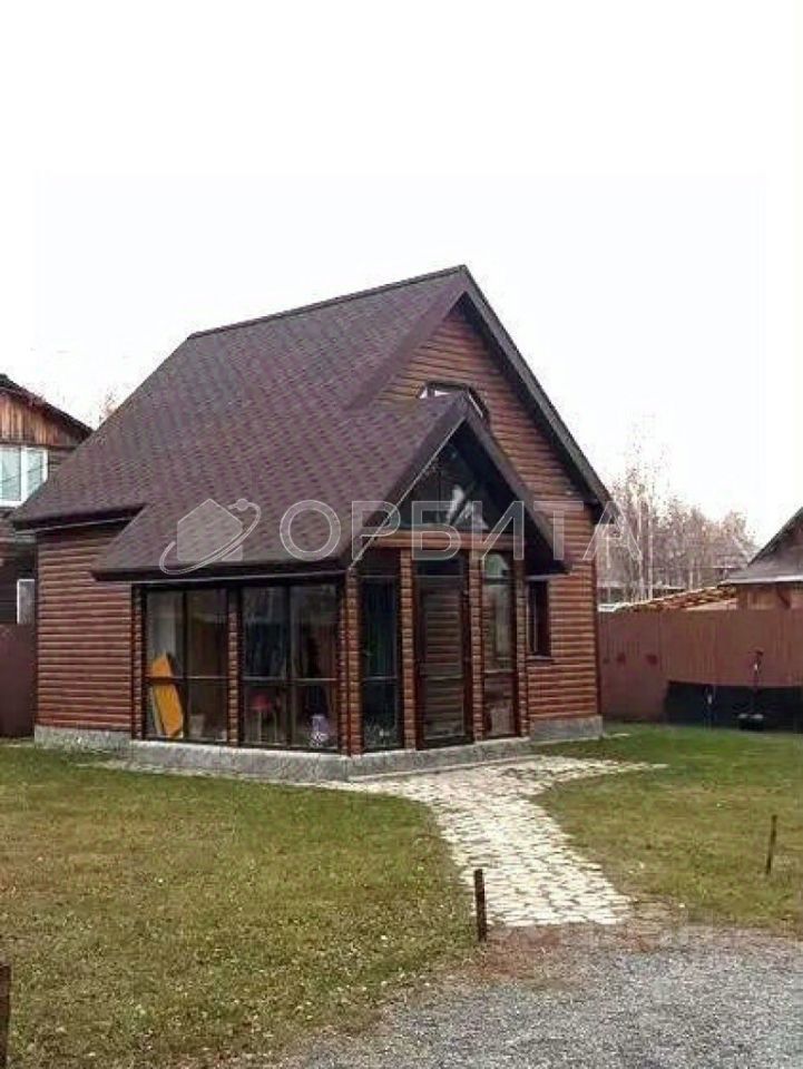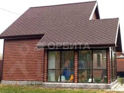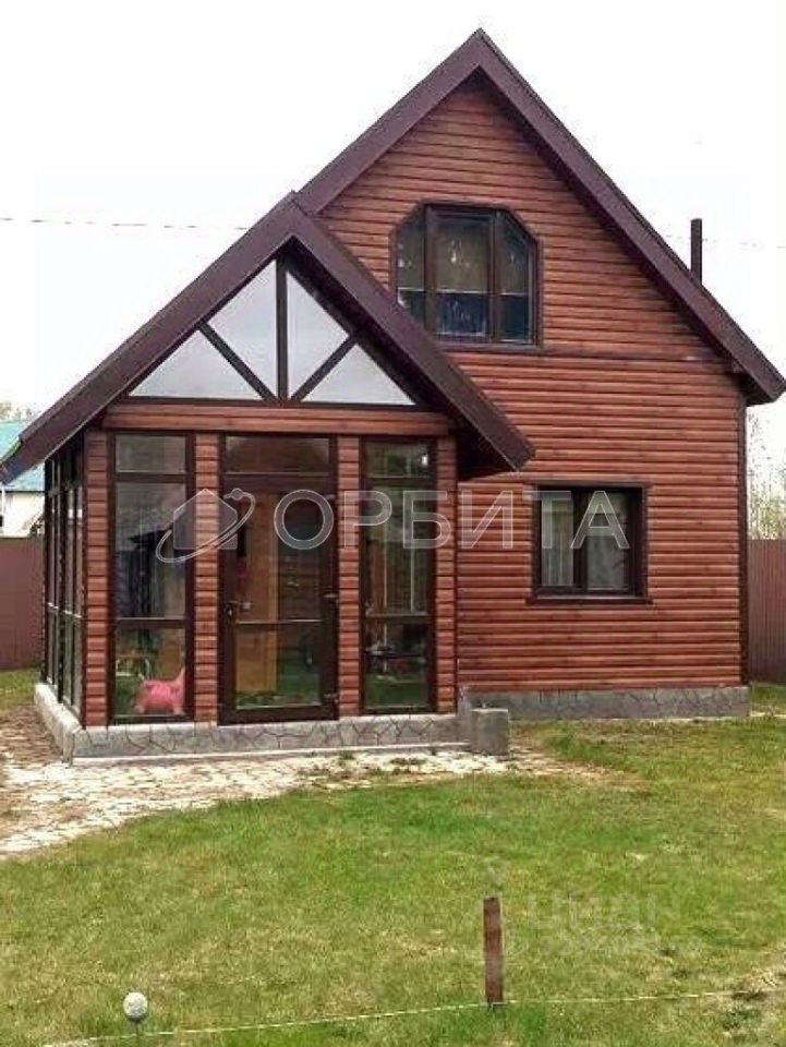 Бревенчатый дом на ленточном фундаменте, утеплённый минеральной ватой, облицованный высококачественным сайдингом под дерево.