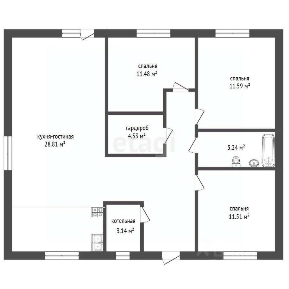 Продуманная планировка, три спальни, кухня гостиная, гардеробная, котельная с газовым котлом, водонагревателем 200л., все коммуникации заведены в дом, новому собственнику необходимо будет подключить центральный водопровод и газ (проходят по улице, подведены к забору). Септик переливной.