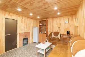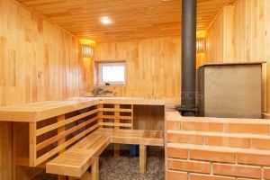 При входе в баню комната отдыха, далее проходим в парилку, откуда есть выход в душевую. Баня запущена, функционирует, можно париться! Все коммуникации подведены.