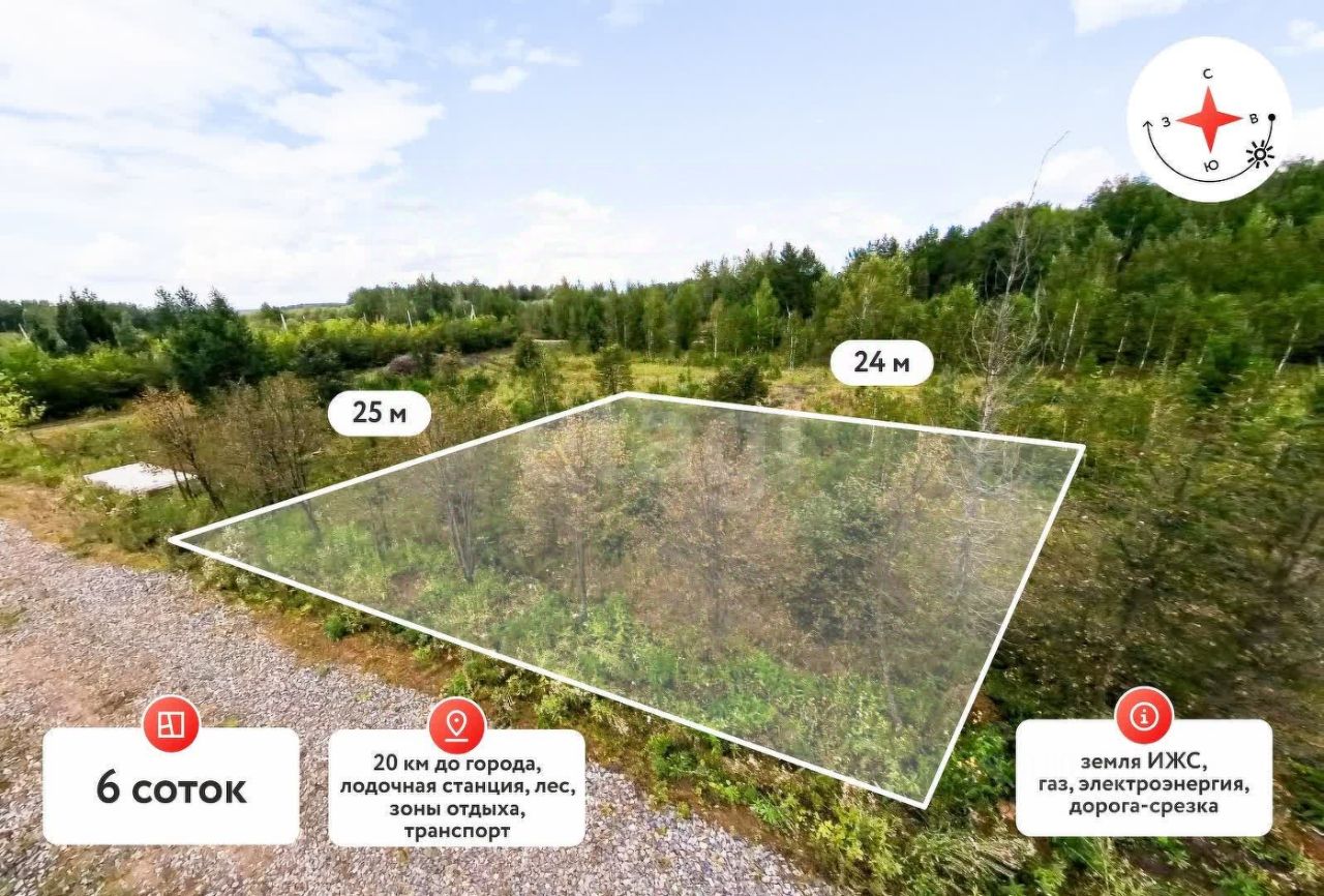 Есть участки с молодыми елками. Электричество подведено к каждому участку. В конце года будет газификация данного коттеджного поселка. В шаговой доступности вся необходимая для жизни инфраструктура д. Ушаково, супермаркет Магнит, Светофор, Красное и Белое, OZON.
