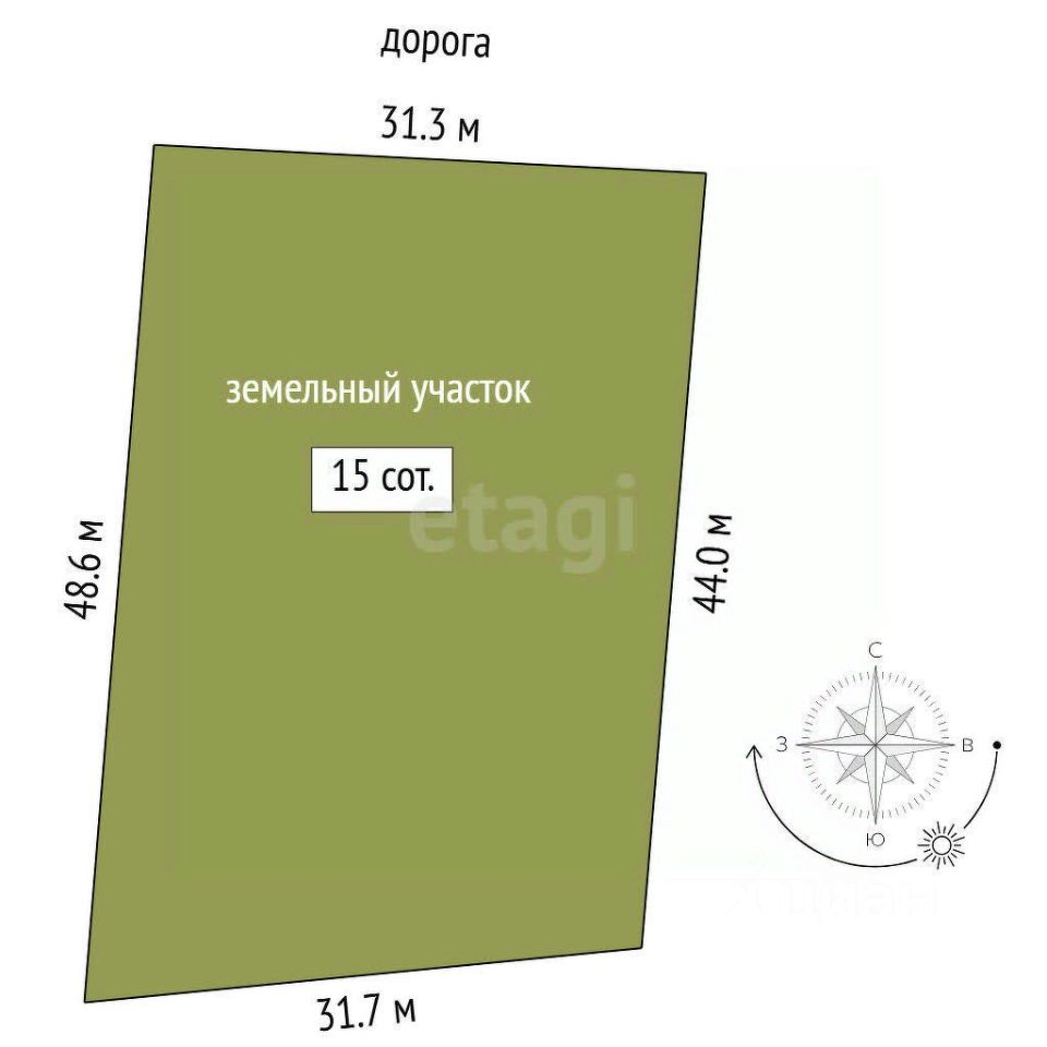 Площадь участка 15соток, форма правильная.