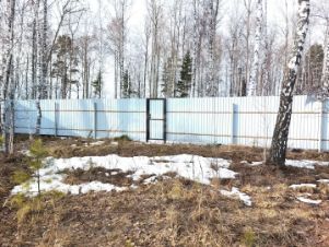 Участок огорожен профнастилом. Кроме калитки двое ворот, центральные и второстепенные (выходят на еще одну дорогу).