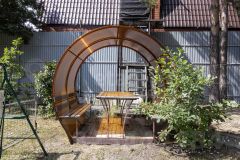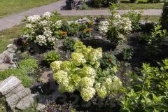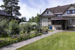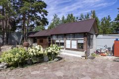 Тротуарные зоны выложены полимерной плиткой и плитняком, есть газоны, парковка для автомобилей. Множественные плодоносящие деревья и кустарники. Теплица. Украшением участка являются Вековые сосны, декоративные деревья и кустарники и клумбы с цветами.