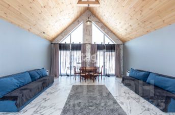 В скандинавском стиле, в нейтральных тонах и построен из качественного керамзитоблока толщ. 200,